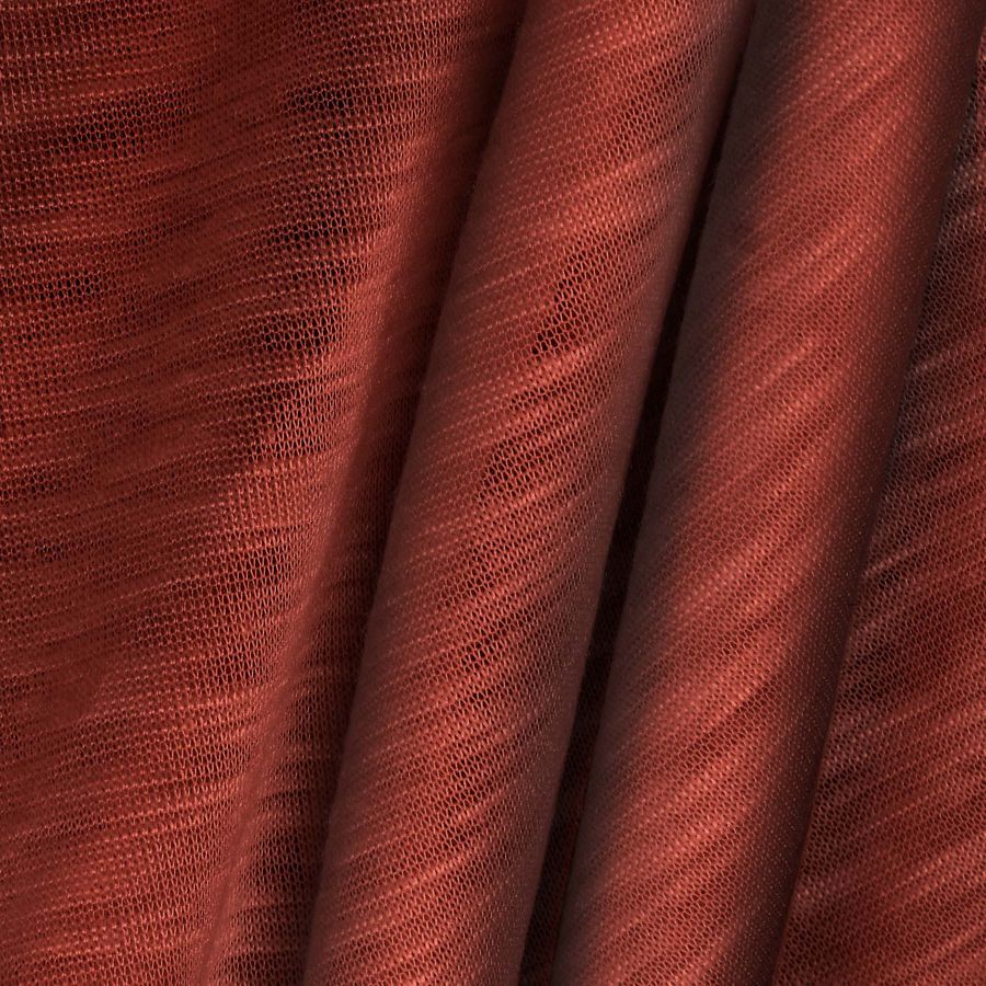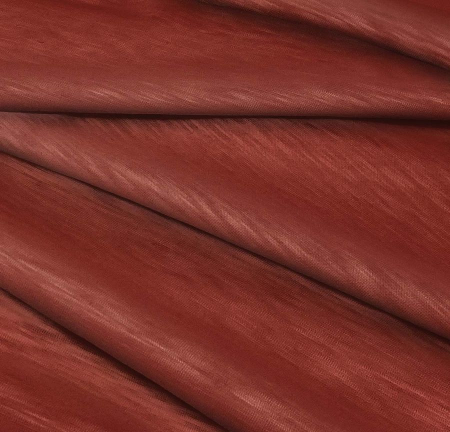 La tela está impresa con el color liso a una sola cara por impresión digital textil, lo que significa que la tinta se aplica directamente sobre la superficie de la tela. La textura es lisa y visualmente translúcida con un tono jaspeado suave. La tela es elástica, lo que la hace ideal para prendas de punto.