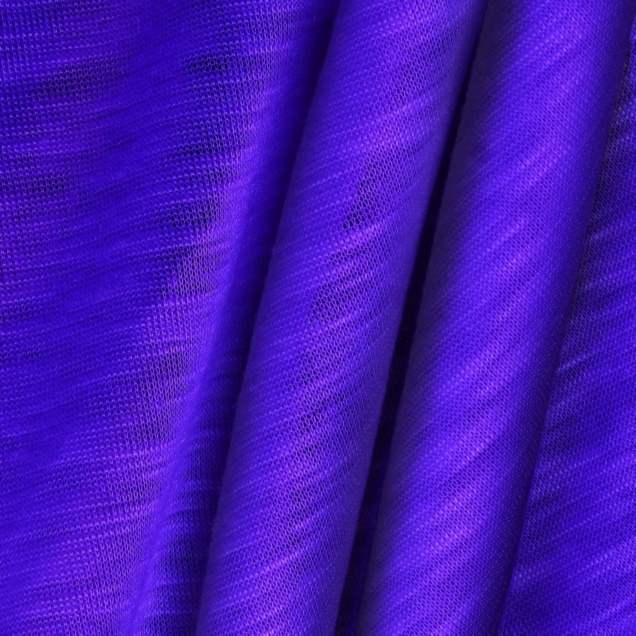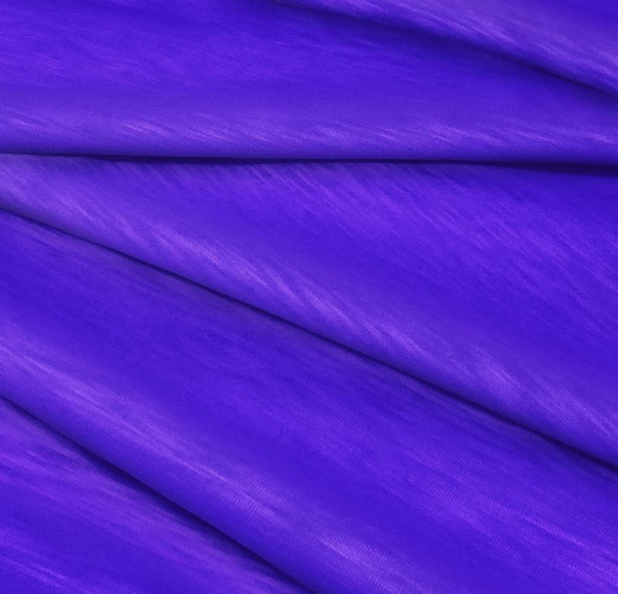 La tela base es el Punto Camiseta Jaspeado - Dubái, una tela de punto con composición de 100% poliéster y un gramaje de 135 gr/m2. El ancho de la tela es de 160 cm y está impresa con un color liso en una sola cara por impresión digital textil. El color liso impreso es un azul chillón, que se crea a partir de las tintas cian y magenta, sin presencia de tinta amarilla o negra, lo que le otorga un tono vibrante y llamativo. Este color combina muy bien con tonos frescos y claros, como blancos, grises y otros tonos de azul.