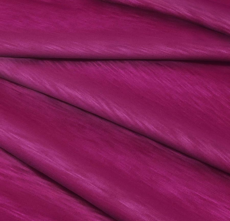 La tela base de este tejido es el Punto Camiseta Jaspeado - Dubái, compuesta por 100% POLIÉSTER con un gramaje de 135 gr/m2 y un ancho de 160cm. El color liso impreso es un Morado, Amatista púrpura con un contenido de 42 Cyan, 100 Magenta, 28 Yellow y 28 Black en su CMYK. Este tono morado representa la espiritualidad y la creatividad, y es frecuentemente utilizado en prendas de ropa elegantes y de alta costura. Combina especialmente bien con colores neutros como el blanco, negro y gris, así como con tonos más saturados como el azul y el verde.
