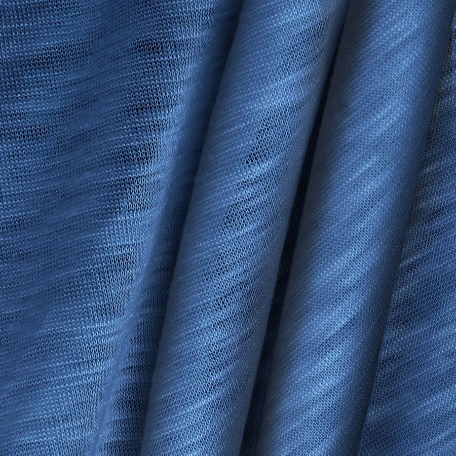 La tela base es el punto camiseta jaspeado - Dubái de tela de punto con una composición 100% poliéster y un gramaje de 135 g/m2 con un ancho de 160 cm. El color liso impreso es de un azul cerámica de Delft con un CMYK de 83 60 23 7. Este color se caracteriza por ser un color intenso y profundo, que simboliza la estabilidad y la profundidad del mar. Se combina particularmente bien con colores neutros como el beige o el blanco.