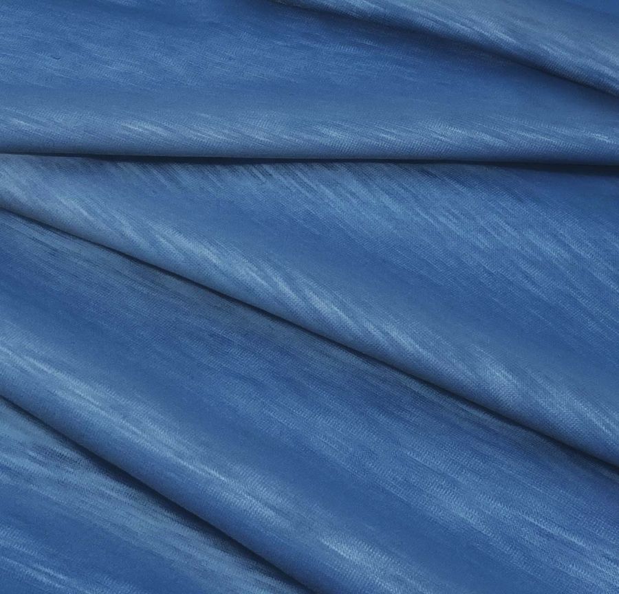 La tela base está impresa con el color liso a una sola cara por impresión digital textil, lo que significa que no es un tejido tintado sino impreso por una sola cara. Las características generales de la tela base son que tiene una textura suave y elástica, lo que la hace ideal para prendas de punto. Además, tiene una textura visual jaspeada, lo que le da un aspecto interesante y llamativo. El color liso impreso tiene una textura visual translúcida y una textura táctil lisa, lo que lo hace ideal para prendas de moda.