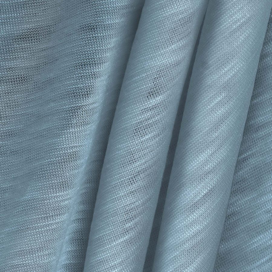 La tela base, Punto Camiseta Jaspeado - Dubái, es una tela de punto compuesta por 100% poliéster, con un gramaje de 135gr/m2 y un ancho de 160 cm. Su color base es de un tono jaspeado que combina los colores blanco y gris del propio tejido. El color liso impreso, Azul Glaciar, se produce mediante una impresión digital textil a una sola cara, con valores de CMYK de 37, 6, 6 y 0 para Cyan, Magenta, Yellow y Black respectivamente. Este color tiene un efecto brillante y una tonalidad fresca, con el que se pueden crear combinaciones con otros colores como el blanco, negro y gris, así como distintos tonos de azul para crear diseños más complejos.