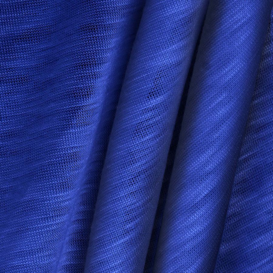 El tejido está impreso con el color liso a una sola cara mediante impresión digital textil. Las características principales de la tela base son su textura lisa, su aspecto visual translúcido y jaspeado, y su elasticidad. El azul Klein da un toque de modernidad y sofisticación al tejido, lo que lo convierte en una elección perfecta para la moda tanto femenina como masculina. Además, su textura suave y flexible le hace ideal para prendas de punto y camisetas.