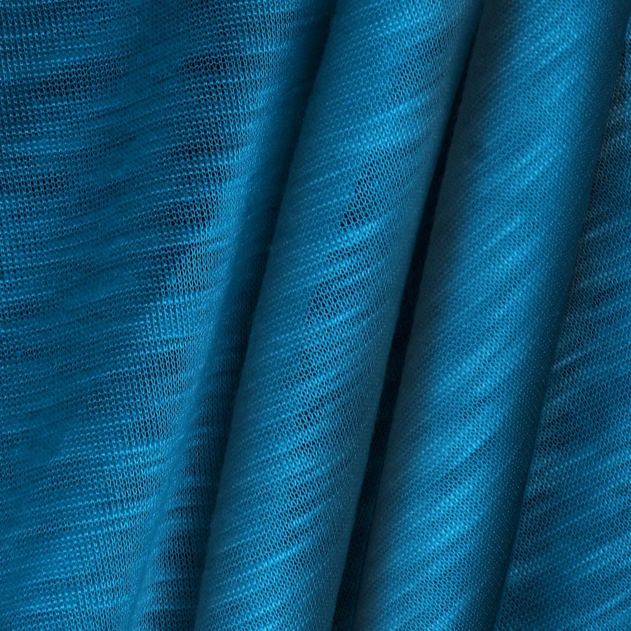 La tela base de esta prenda es la Punto Camiseta Jaspeado - Dubái, una tela de punto de 100% poliéster con un gramaje de 135 gr/m2 y un ancho de 160 cm. Su color liso impreso es un azul intenso similar al azul lapislázuli, con un CMYK de 93 56 28 13, lo que indica que contiene una alta cantidad de tintas cyan y magenta. Este color secundario destaca por su vibrante tonalidad, que evoca tranquilidad y serenidad. Complementa a la perfección con tonos blancos y negros, así como con otros tonos azules y grises.