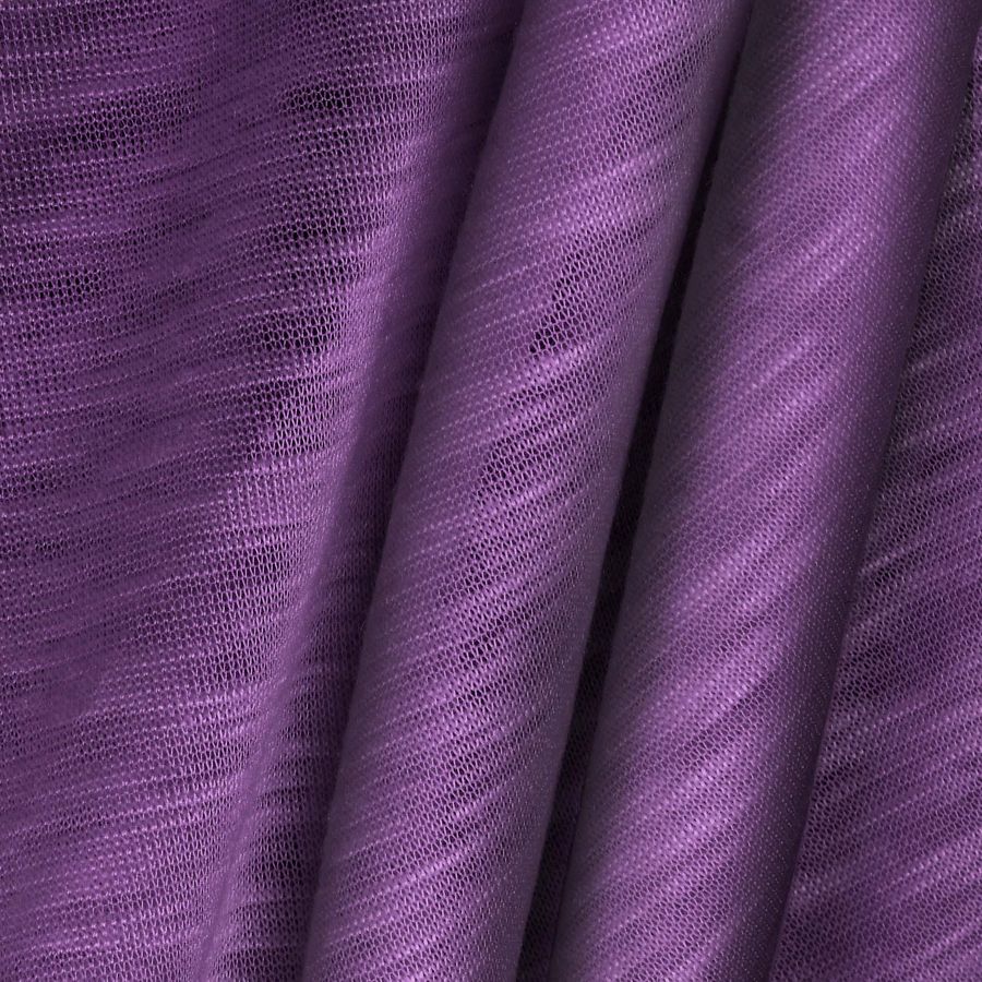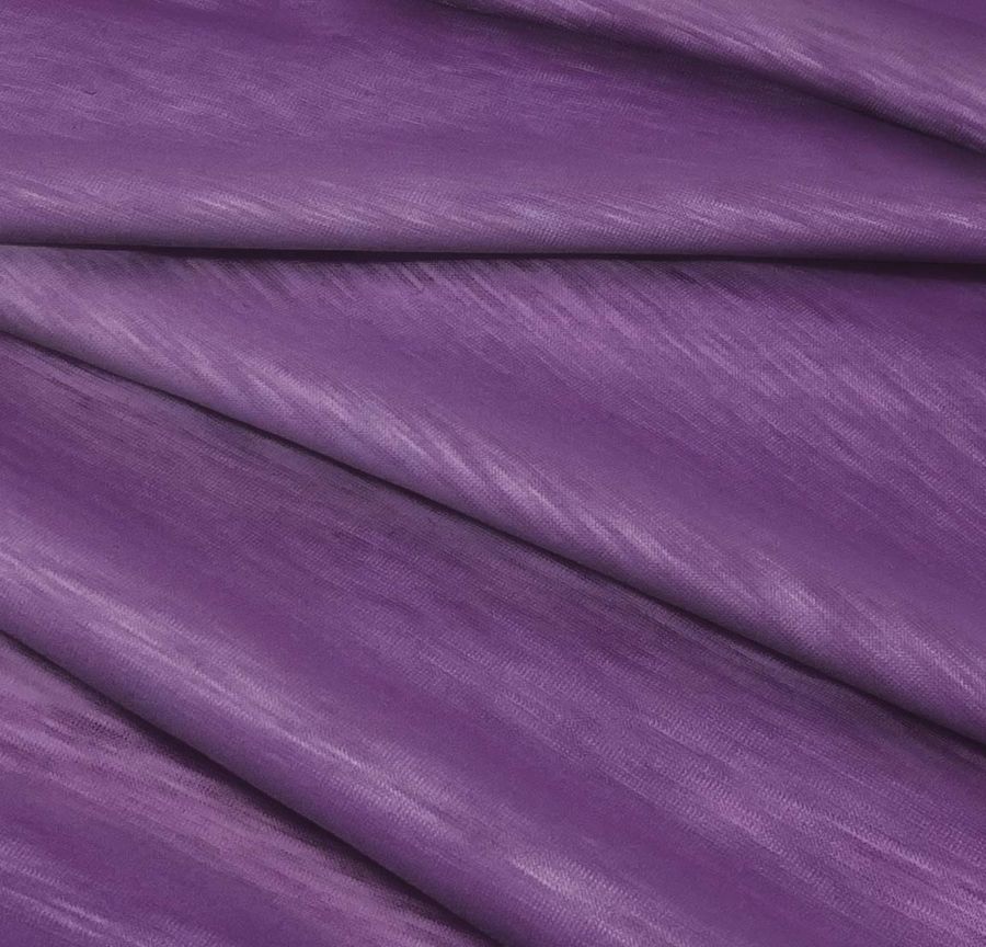 La tela base es la Punto Camiseta Jaspeado - Dubái, una tela de punto compuesta al 100% de poliéster con un gramaje de 135 gr/m2 y un ancho de 160 cm. El color liso impreso es Azul-Lila con un CMYK de 65 78 27 12. Este color combina tonalidades de azul y lila que lo hacen único y elegante. El color secundario, el lila, transmite un significado de creatividad, por lo que es ideal para prendas de moda que busquen destacar. La tela está impresa a una sola cara por impresión digital textil.
