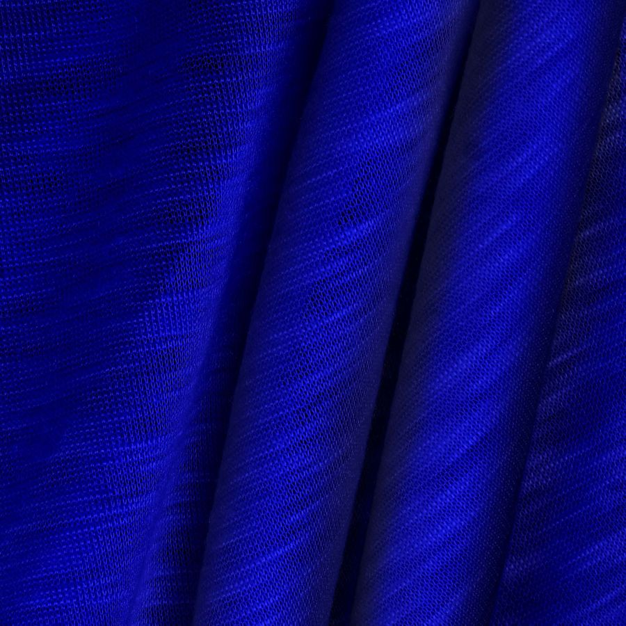 La tela base Punto Camiseta Jaspeado - Dubái, de 100% poliéster, tiene un gramaje de 135 gr/m2 y un ancho de 160 cm. El color liso impreso en ella es Azul/Azul marino, con un CMYK de 100 93 26 14. El color secundario es un azul oscuro con un toque ligeramente morado, que evoca seriedad y calma. Combina a la perfección con tonalidades claras de gris o beige para crear un contraste agradable a la vista. El tejido está impreso con el color liso a una sola cara por impresión digital textil. La tela cuenta con una textura lisa y translúcida, con un tacto suave y una ligera elasticidad, lo que la convierte en una opción ideal para prendas de punto. Además, es atemporal, lo que significa que puede utilizarse en cualquier temporada. Las aplicaciones ideales para el Punto Camiseta Jaspeado - Dubái son la moda masculina o femenina, especialmente para la creación de camisetas. Hay que tener en cuenta que este tejido es delicado y se debe lavar a temperatura máxima de 30ºC, no blanquear y evitar la secadora. Admite limpieza en seco siempre que se evite el tricloroetileno y se plancha a temperatura fría. La tecnología de impresión utilizada en esta tela es la sublimación, un proceso que permite transferir la tinta a la superficie de la tela mediante calor y presión, garantizando la durabilidad y calidad del color impreso.
