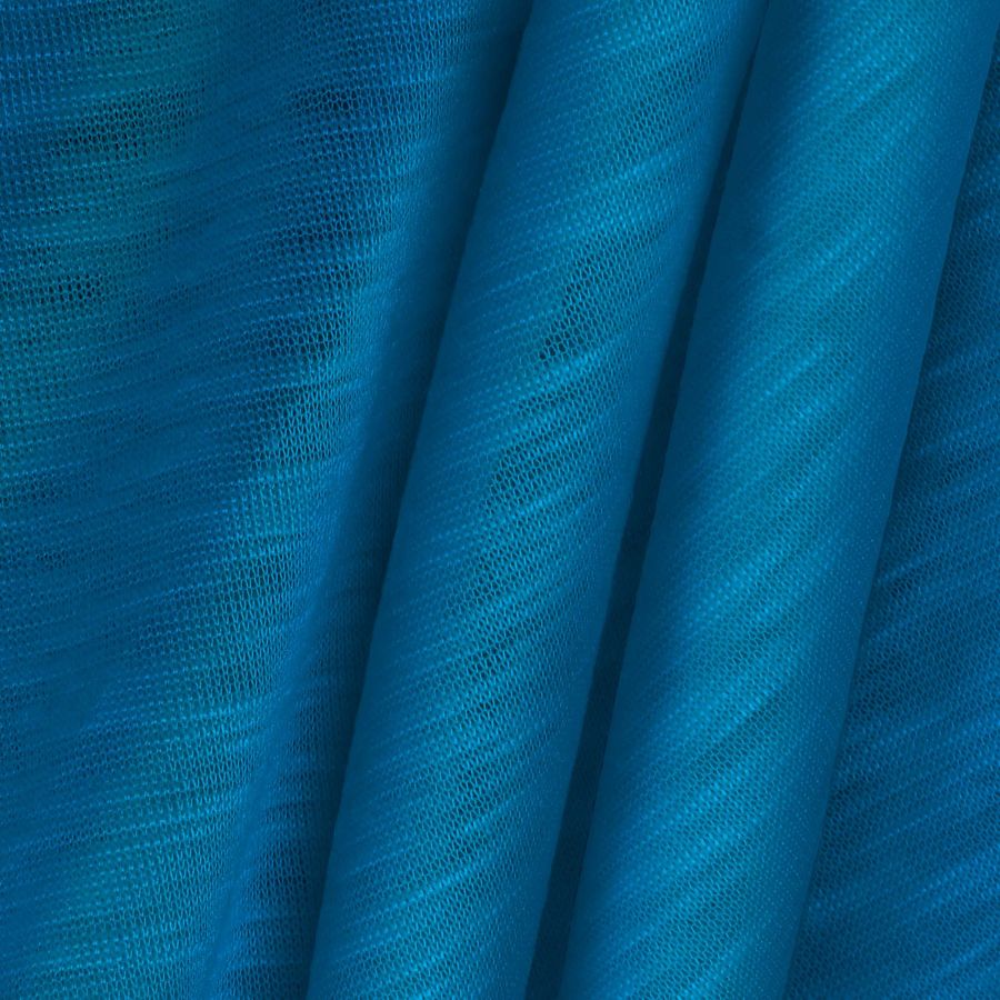 La tela base de este tejido es Punto Camiseta Jaspeado - Dubái, compuesta por 100% poliéster de 135 gr/m2, con un ancho de 160 cm. El color liso impreso es Azul Phthalo, con un CMYK de 84 42 0 0. Este color es un azul profundo y vibrante, que combina muy bien con colores claros y brillantes como el amarillo, el rosa y el verde menta.