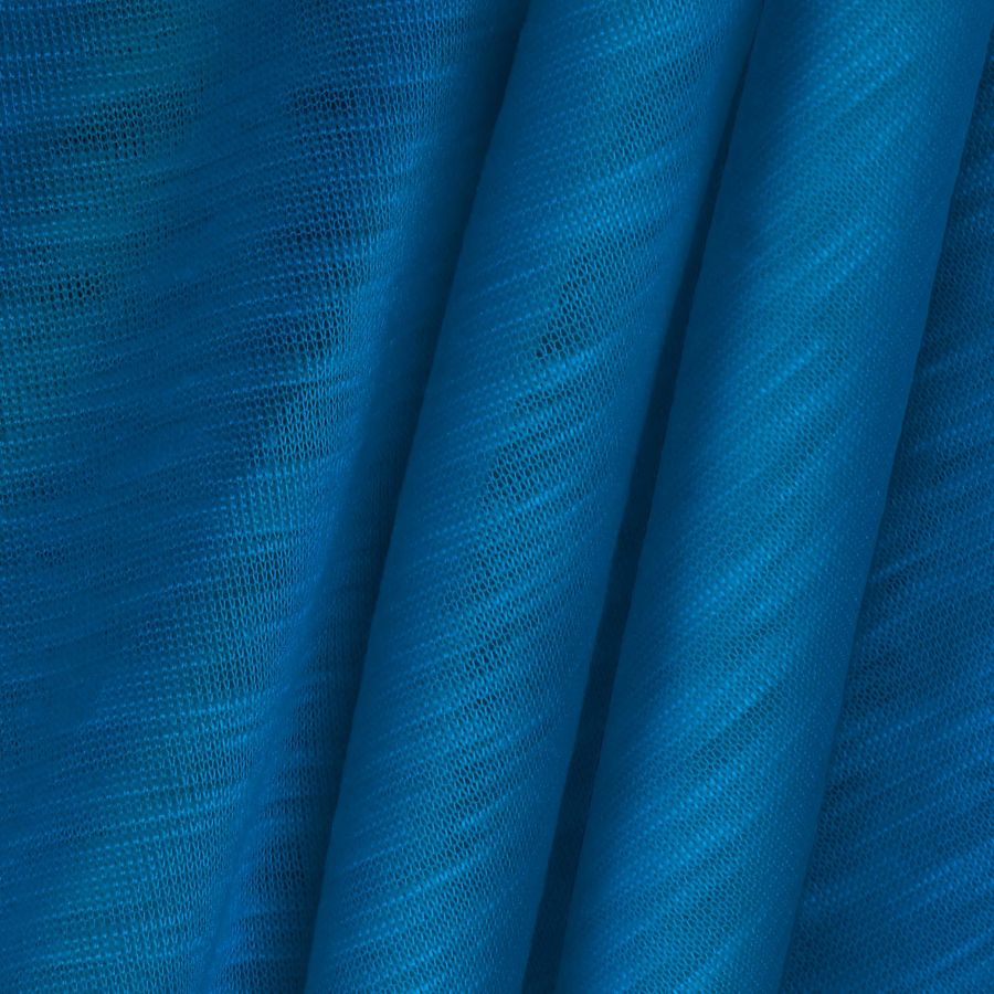 La tela base de esta prenda es el Punto Camiseta Jaspeado - Dubái, con una composición del 100% poliéster en un gramaje de 135 gr/m2 y un ancho de 160 cm. El color liso impreso en esta tela es un Azul-Azur con un CMYK de 87 49 0 0. Este color es un tono vibrante y fresco que evoca la tranquilidad del mar y la profundidad del cielo. El Azul-Azur combina muy bien con colores naturales como beige, marrón y gris, así como con colores brillantes como el amarillo y el naranja. Es importante destacar que la tela está impresa a una sola cara mediante impresión digital textil, lo que significa que el color se encuentra únicamente en una de las caras de la tela.