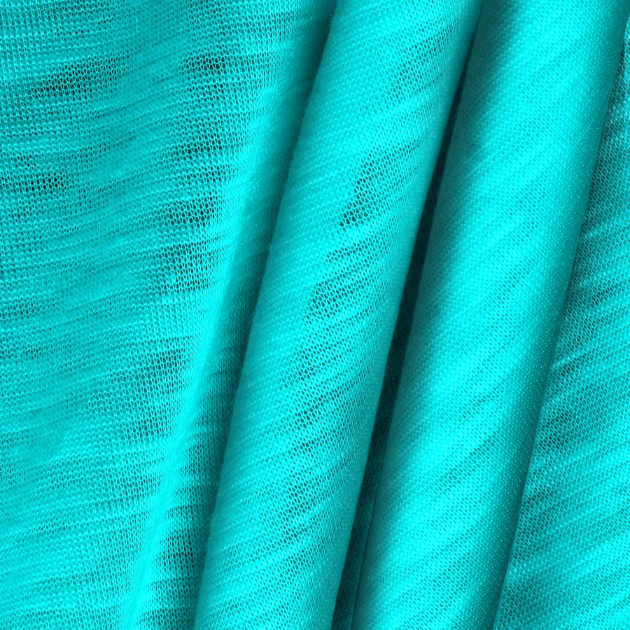La tela base, Punto Camiseta Jaspeado - Dubái, es una tela de punto de 100% poliéster con un gramaje de 135 gr/m2 y una anchura de 160 cm. Destaca por ser una tela elástica y con un tacto suave, perfecta para prendas de moda de mujer/hombre como camisetas. El color liso impreso es Azul-Cian con una tinta Cyan de 57, una tinta Magenta de 0, una tinta Yellow de 15 y una tinta Black de 0, lo que da como resultado un CMYK de 57 0 15 0. Este color secundario es una mezcla de azul y cian, que evoca la frescura del agua y la vitalidad del cielo en un día despejado. Combina muy bien con otros azules y verdes brillantes, así como con tonos pastel como el rosa pálido y el amarillo limón.