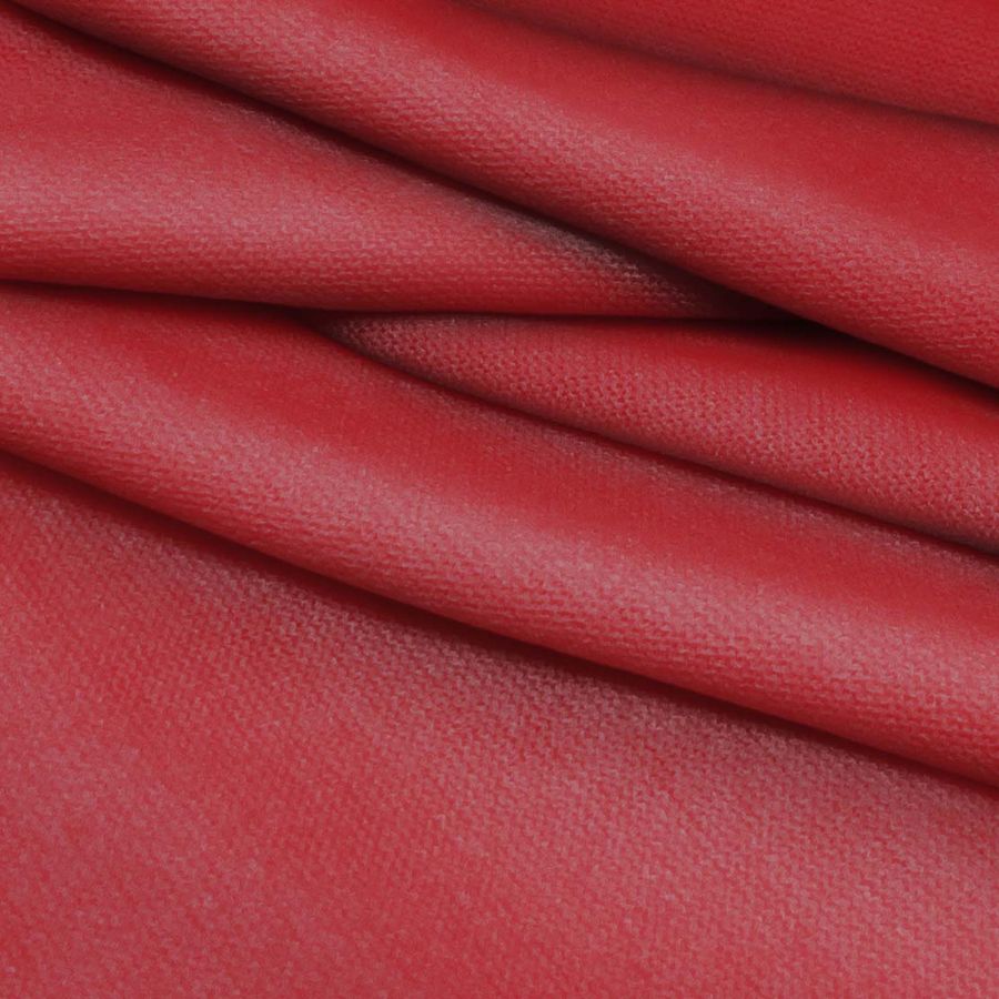 La tela base, Punto Jersey de Tacto Algodón - Atenas, tiene una composición de 81% POLIÉSTER, 15% ACRÍLICO, 4% ELASTANO. Su color liso impreso es un rojo bermellón, con un CMYK de 25 94 75 21, que combina perfectamente con tonos naturales y grises. El tejido está impreso con color liso a una sola cara por impresión digital textil, lo que da una gran definición y viveza de color.