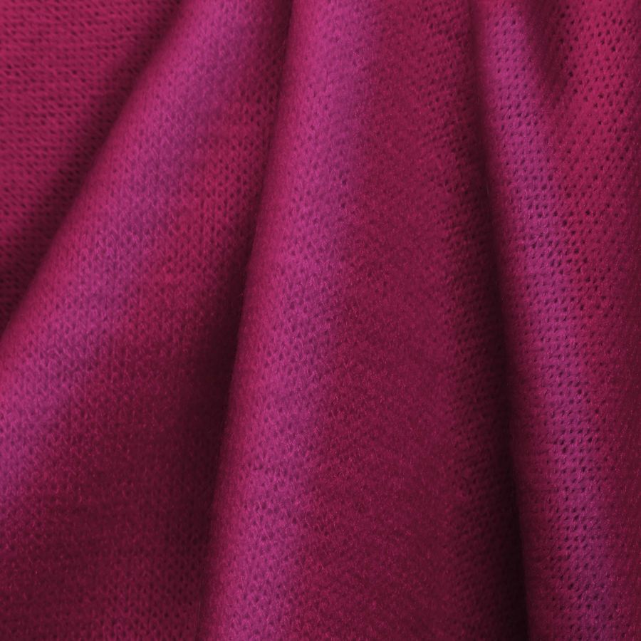 La tela base tiene una textura y tacto suave y elástico, lo que la hace ideal para prendas de punto como jerseys, cardigans y vestidos. Además, puede usarse para accesorios como calcetines, bufandas y fulares. Dado que la tela es de punto, también es perfecta para mantas de salón y dormitorio, así como para servilletas de mesa. El color Rojo Fresa, por su parte, aporta un toque vibrante pero elegante a cualquier prenda o complemento.