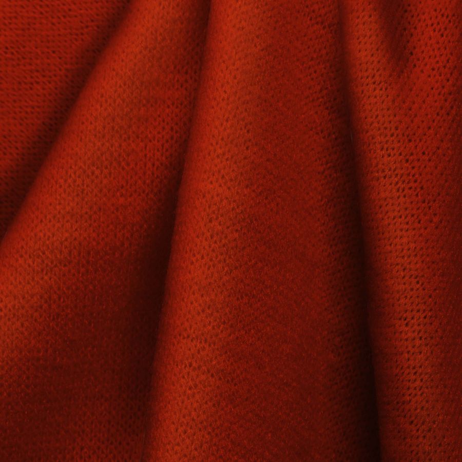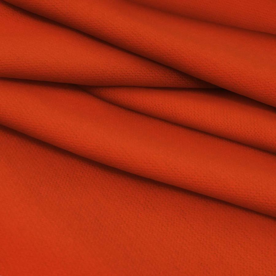 La tela base, Punto Jersey de Tacto Algodón - Atenas, es una tela de punto compuesta por 81% de poliéster, 15% de acrílico y 4% de elastano, con un gramaje de 239 gr/m2 y un ancho de 150 cm. El color liso impreso, Rojo Ladrillo, se crea con una combinación de 9% de tinta cian, 90% de tinta magenta, 100% de tinta amarilla y 1% de tinta negra, lo que da como resultado un color intenso y cálido.