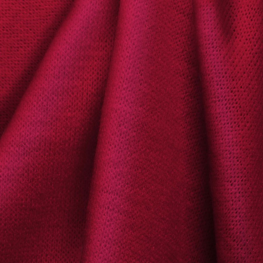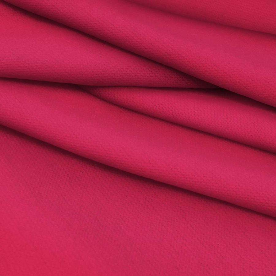 La tela base es Punto Jersey de Tacto Algodón - Atenas, con una composición de 81% poliéster, 15% acrílico y 4% elastano, con un gramaje de 239 gr/m2 y un ancho de 150 cm. El color liso impreso es Rojo Crayola con un CMYK de 4 94 55 0, lo que refleja un tono predominantemente rosa oscuro con un toque rojizo. Este color secundario combina bien con tonos neutros como el gris y el beige, así como con tonos de verde oscuro y morado. La tela está impresa con el color liso a una sola cara por impresión digital textil, lo que significa que no es un tejido tintado sino impreso por una sola cara.