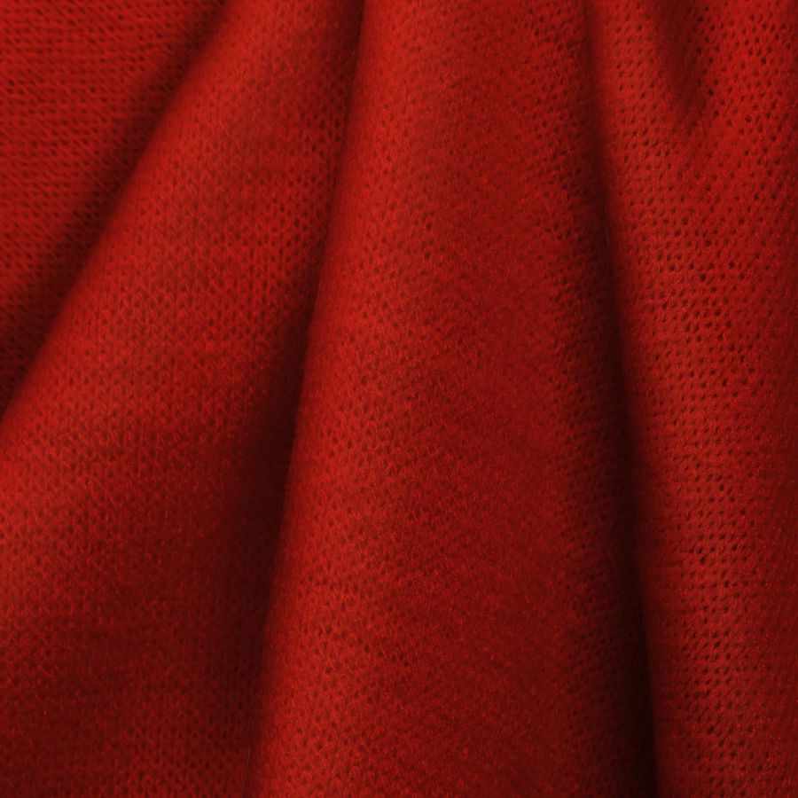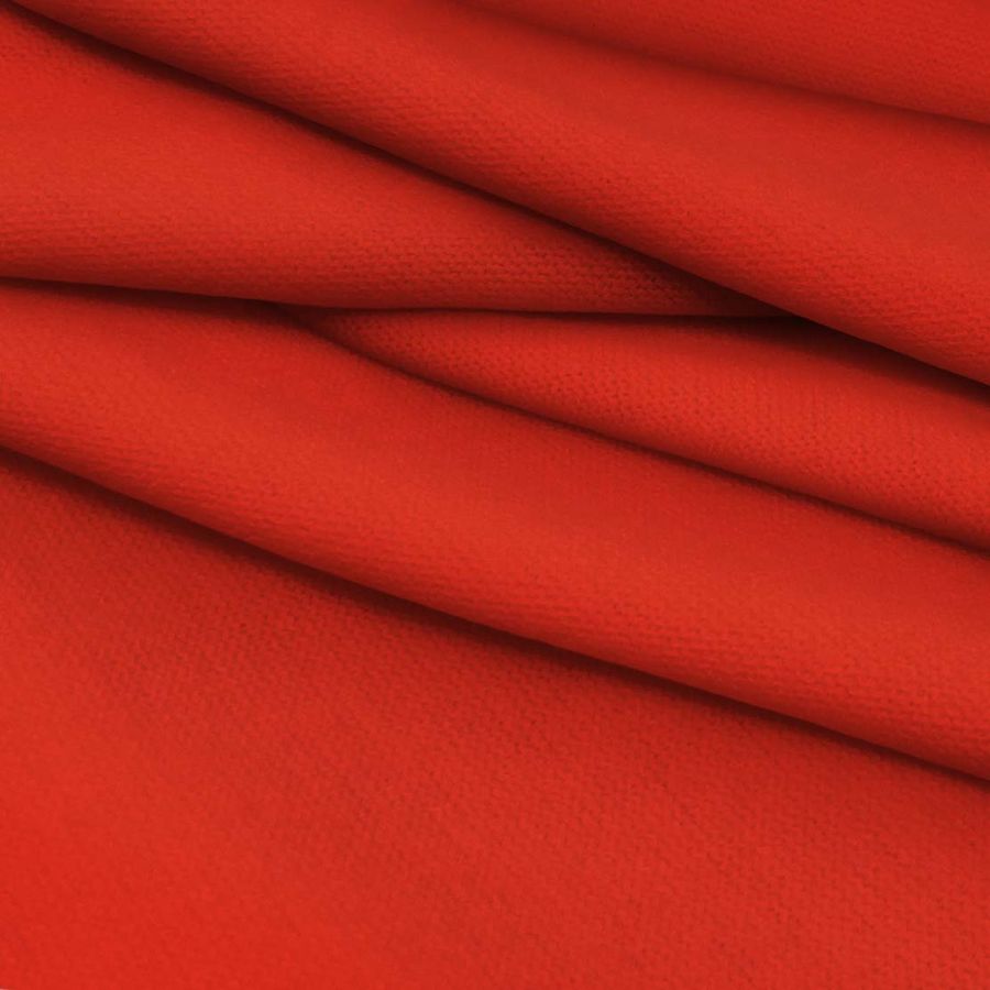 La tela base de este tejido es un Punto Jersey de Tacto Algodón - Atenas, compuesto por 81% POLIÉSTER, 15% ACRÍLICO, 4% ELASTANO, con un gramaje de 239 gr/m2 y una anchura de 150 cm. Su color liso impreso es de un intenso Rojo, Ferrrari, con una combinación de tintas de CMYK 0 92 91 0 (Cyan, Magenta, Yellow y Black respectivamente). Este color se caracteriza por su fuerza y energía, siendo este tono completamente saturado y luminoso. Las tonalidades de color que mejor se combinan con el Rojo Ferrari son los tonos grises, los colores blancos y negros, los tonos nudes y los verdes oscuros.