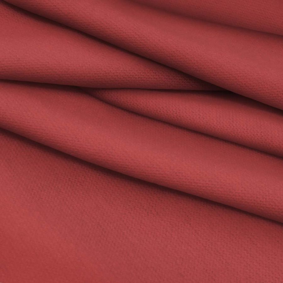 La tela base del tejido en cuestión es el Punto Jersey de Tacto Algodón - Atenas, compuesta en un 81% por poliéster, un 15% de acrílico y un 4% de elastano. Su gramaje es de 239 gr/m2 y su ancho de 150 cm. El color liso impreso es Rojo Persa, el cual contiene una tinta Cyan del 24, una tinta Magenta del 83, una tinta Yellow del 68 y una tinta Black del 17, lo que se refleja en el valor de su CMYK: 24 83 68 17. Este color es un rojo oscuro con matices morados que le otorgan profundidad y elegancia. Combina especialmente bien con tonos fríos como el azul, el verde y el gris. Este tejido está impreso con el color liso en una sola cara mediante impresión digital textil.