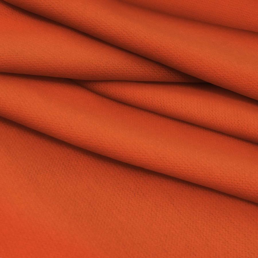 La tela base, Punto Jersey de Tacto Algodón - Atenas, es una tela de punto compuesta por 81% poliéster, 15% acrílico y 4% elastano, con un gramaje de 239 gr/m2 y un ancho de 150 cm. El color liso impreso en esta tela es Rojo anaranjado, con una combinación de tinta magenta (82) y tinta yellow (89), reflejando un CMYK de 0 82 89 0. Este color secundario tiene un tono cálido y vibrante, que combina particularmente bien con colores como el beige y el blanco.