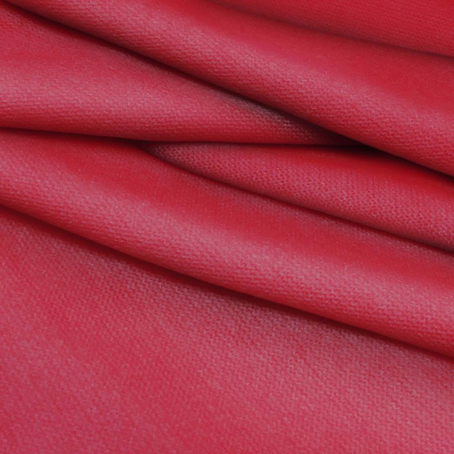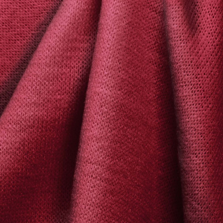 La tela base, Punto Jersey de Tacto Algodón - Atenas, tiene un gramaje de 239 gr/m2 y está compuesta por 81% de poliéster, 15% de acrílico y 4% de elastano, lo que la hace suave y elástica al tacto. El color rubí impreso en la tela tiene un CMYK de 22 96 67 14 y se combina magníficamente con tonalidades similares como el rosa oscuro y el borgoña. La tela está impresa a una sola cara mediante impresión digital textil. Las características generales de la tela son su textura suave y elástica que aportan comodidad en su uso, mientras que el color liso impreso aporta un toque de elegancia a cualquier prenda o accesorio.
