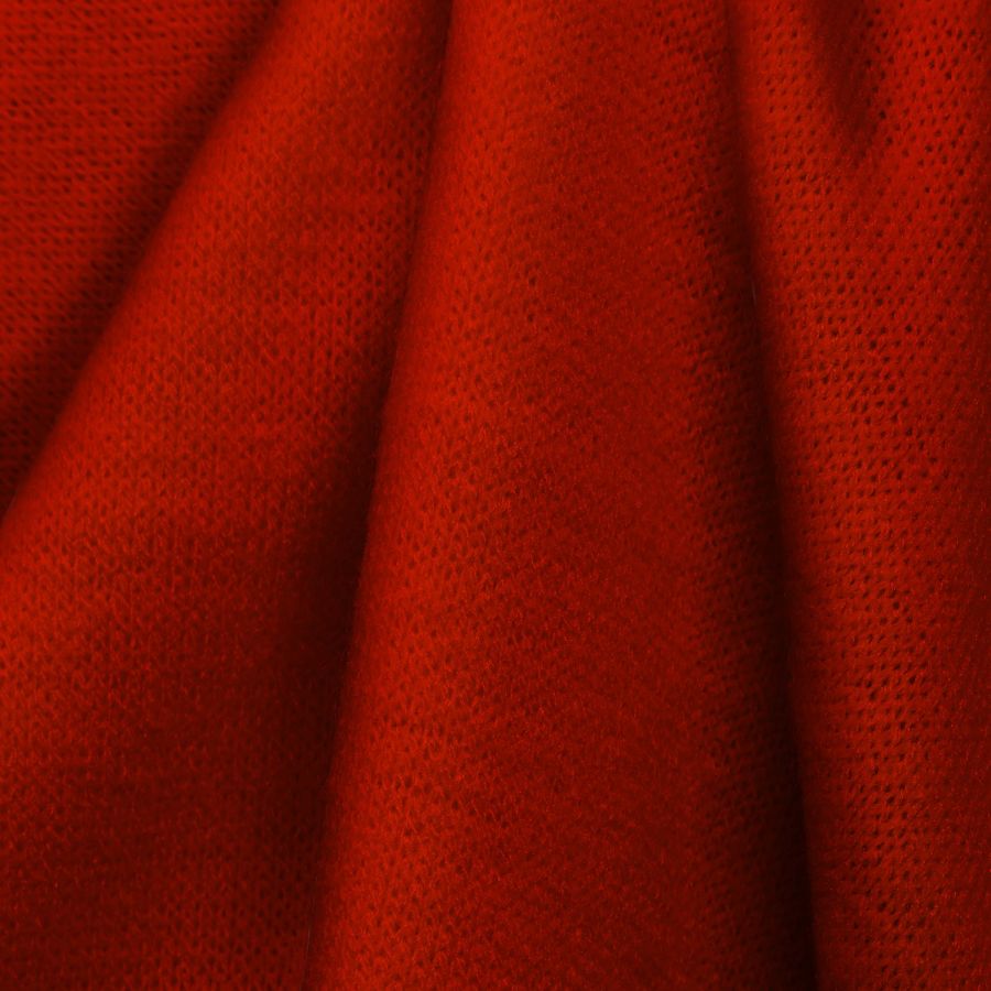 La tela base de este tejido es el Punto Jersey de Tacto Algodón - Atenas, con una composición de 81% poliéster, 15% acrílico y 4% elastano, un gramaje de 239 gr/m2 y un ancho de 150 cm. El color liso impreso es Rojo Annato oscuro, con una combinación de tintas Cyan 0, Magenta 93, Yellow 100 y Black 0 y un resultado CMYK de 0 93 100 0. Este color presenta una tonalidad oscura y cálida, que simboliza pasión y fuerza, y se combina especialmente bien con tonalidades grises, negras y blancas.