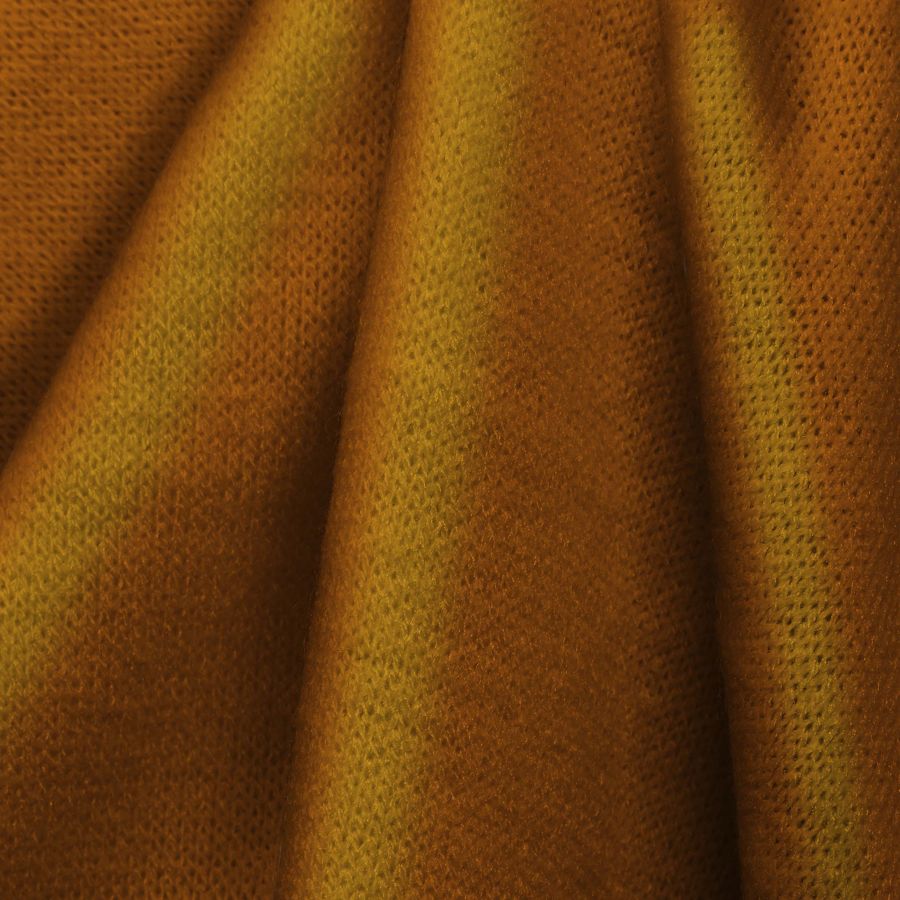 Cabe destacar que el tejido está impreso con el color liso a una sola cara mediante una técnica de impresión digital textil. Las características generales de esta tela incluyen su textura suave y elástica, lo que la hace ideal para prendas de punto, cardigans, jerseys y tops. También se utiliza en la producción de bufandas, fulares y calcetines. Además, se puede emplear en la confección de mantas tanto para el salón como para la habitación y como servilletas de comedor.