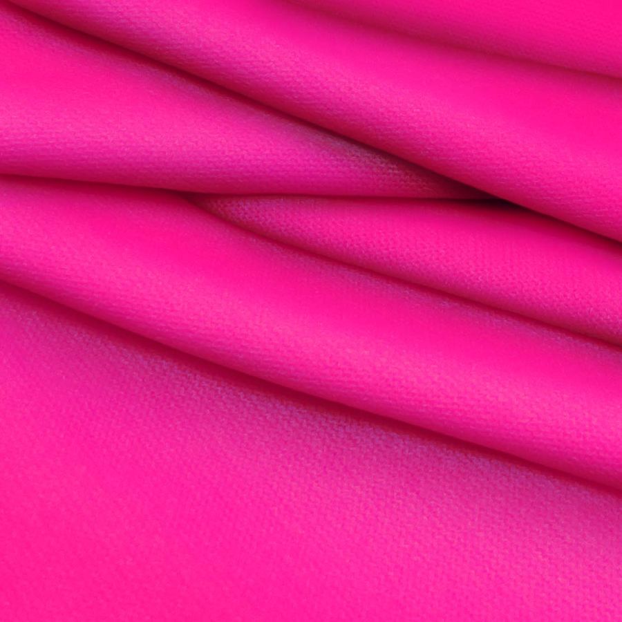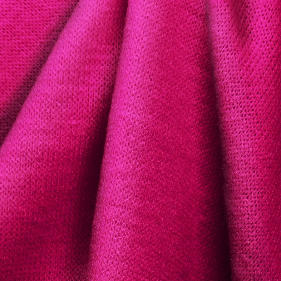 La tela base de este tejido es el Punto Jersey de Tacto Algodón - Atenas, compuesta por un 81% de poliéster, un 15% de acrílico y un 4% de elastano, con un gramaje de 239 gr/m2 y un ancho de 150 cm. El color impreso es un rosa brillante con un CMYK de 0 93 8 0. Este color secundario simboliza la delicadeza, la dulzura y la feminidad, y técnicamente se caracteriza por tener una alta saturación de magenta y un bajo contenido de cian y amarillo. Se combina perfectamente con tonos pastel, grises y verdes suaves. La tela está impresa con el color liso a una sola cara por impresión digital textil, lo que significa que el color se transfiere directamente a la tela sin tintado previo.