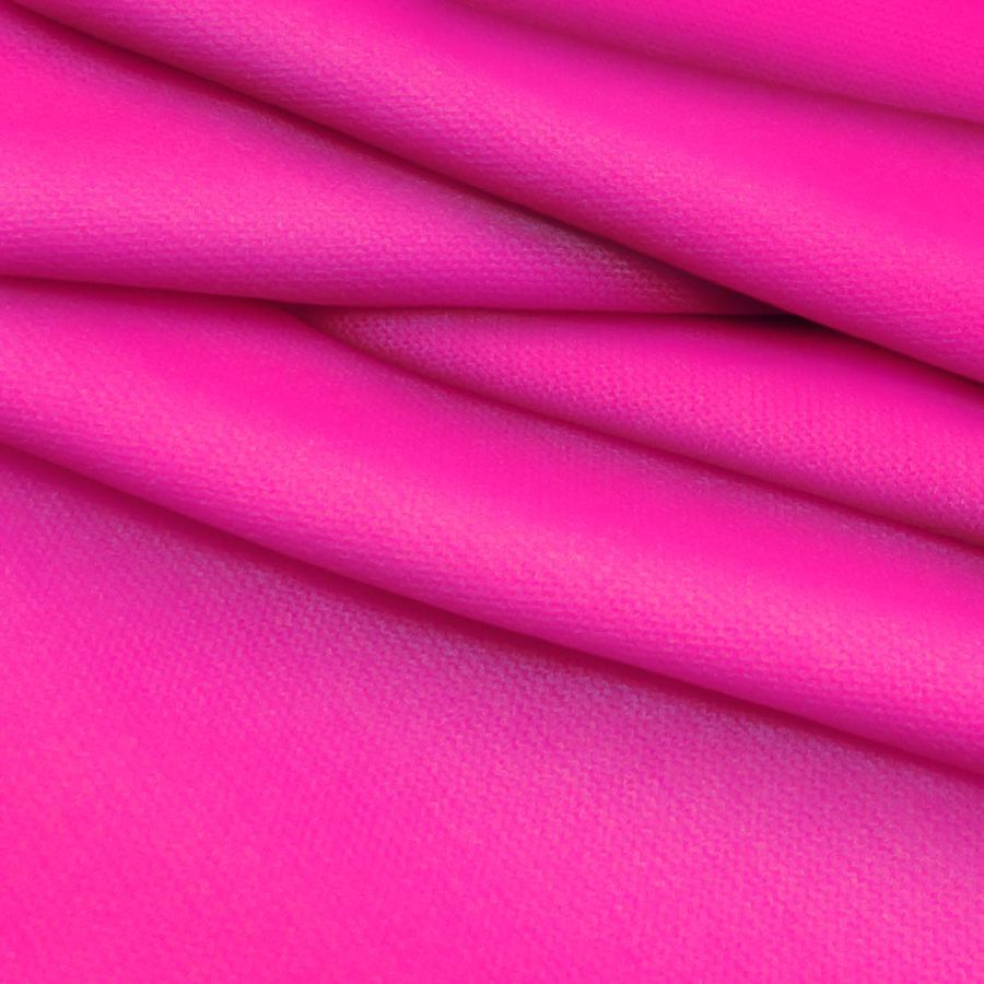 La tela base es el Punto Jersey de Tacto Algodón - Atenas, compuesta por 81% de poliéster, 15% de acrílico y 4% de elastano, con un gramaje de 239 gr/m2 y un ancho de tela de 150 cm. El color liso impreso es rosa fluorescente, con un CMYK de 0 90 0 0, lo que indica una alta saturación de magenta. Este color es muy llamativo y vibrante, y combina perfectamente con otros colores brillantes como amarillo, naranja y verde.