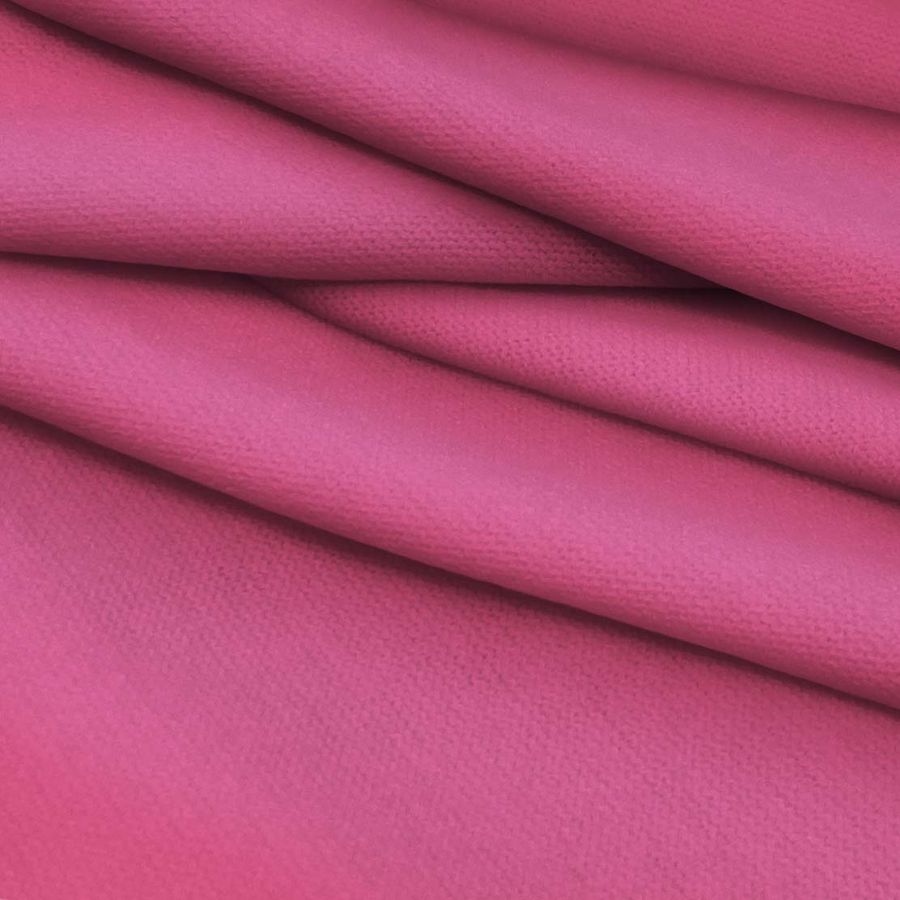 La tela base es el Punto Jersey de Tacto Algodón - Atenas, compuesta en un 81% de poliéster, 15% acrílico y 4% de elastano. Su gramaje es de 239 gr/m2 y su ancho es de 150 cm. El color liso impreso en esta tela es el Rosa Oscuro, con un CMYK de 2 79 24 0 y está impreso a una sola cara por impresión digital textil. Este color se describe como un tono intenso, elegante y sofisticado, que se asocia con la feminidad y el romanticismo. Combina especialmente bien con tonos nude, marrones, grises y verdes.