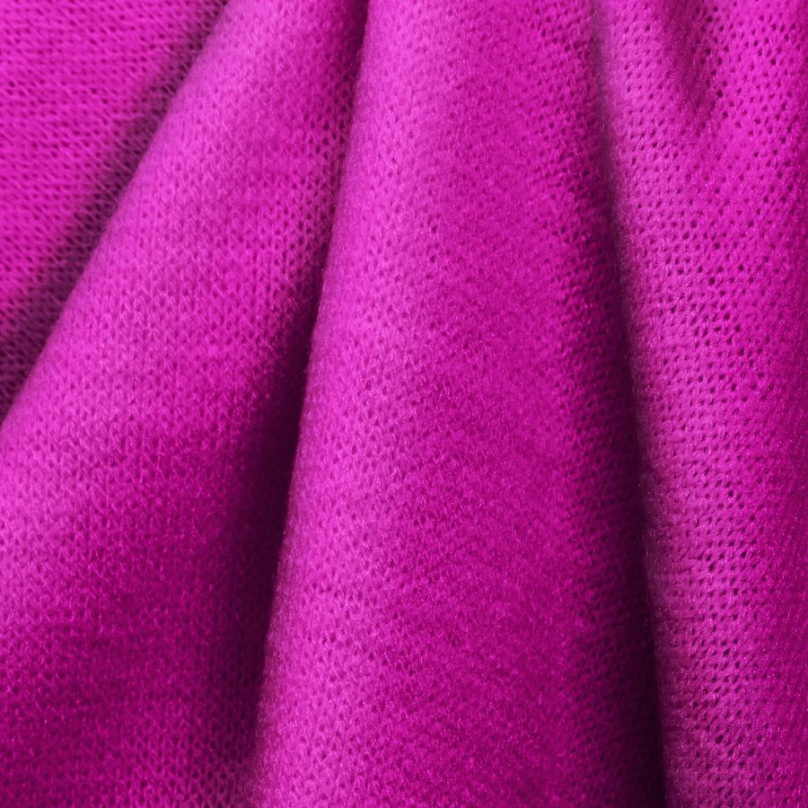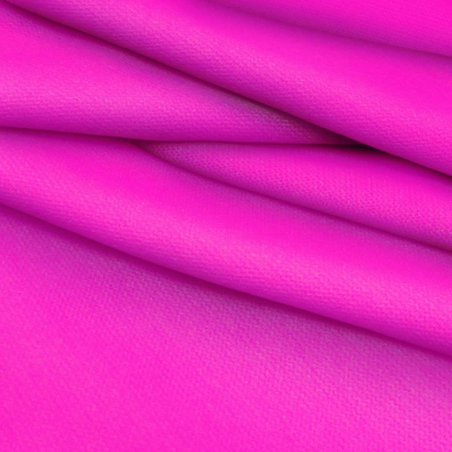 La tela base es el Punto Jersey de Tacto Algodón - Atenas, con una composición del 81% de poliéster, 15% de acrílico y 4% de elastano. El color liso impreso es Rosa Shocking, que se construye mediante una combinación de las tintas Cian y Magenta del CMYK, en una proporción de 22:83. Este color presenta una tonalidad brillante y vibrante que transmite energía y vitalidad. Además, se combina perfectamente con tonos blancos, grises y negros.