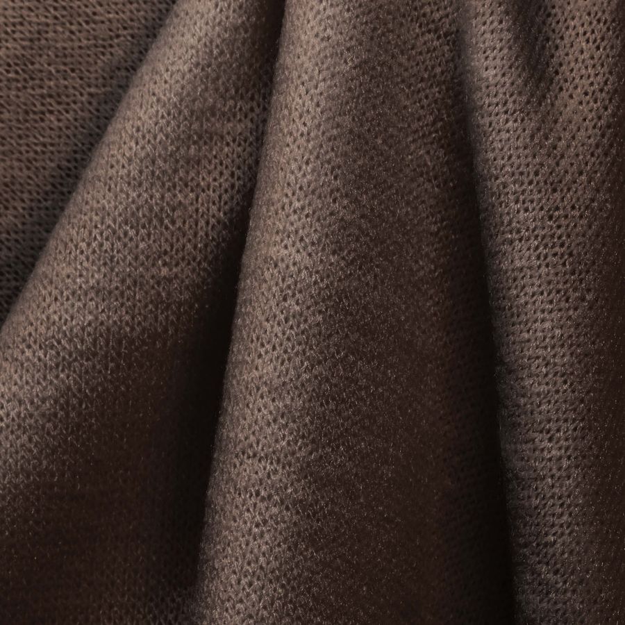 La tela base Punto Jersey de Tacto Algodón - Atenas tiene un color liso Marron Café Solo, cuyo CMYK es de 44 58 62 58. Este color se caracteriza por su elegancia y sofisticación, su tonalidad cálida y terrosa lo hacen adecuado para prendas de invierno y otoño. Combina particularmente bien con matices de beis, crudo y kaki, así como con tonos oscuros, como el verde bosque o el azul marino. Es importante destacar que la tela está impresa con el color liso a una sola cara por impresión digital textil, y que no es un tejido tintado sino impreso por una sola cara.