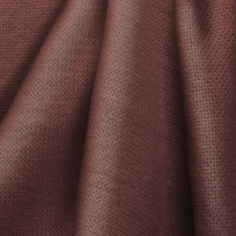 El tejido está impreso con el color liso a una sola cara por impresión digital textil, lo que significa que el color impreso no es un tinte, sino que se imprime directamente sobre la superficie de la tela. Las características principales de la tela base son su textura suave y elástica, lo que la hace ideal para prendas de ropa cómodas y ajustables. La combinación con el color impreso en Marrón Caoba Claro, le proporciona un acabado elegante y sofisticado, ideal para prendas de invierno y otoño.