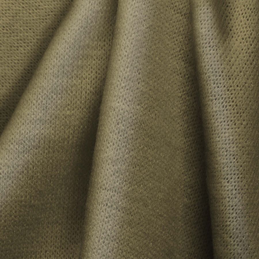 La tela base utilizada es el Punto Jersey de Tacto Algodón - Atenas, compuesta por un 81% de poliéster, un 15% de acrílico y un 4% de elastano. Su gramaje se sitúa en los 239 gr/m² y su ancho alcanza los 150 cm. El color liso impreso que se ha utilizado para esta tela combina el marrón y el crudo en una proporción CMYK de 25 24 54 6. Este color secundario cuenta con un carácter cálido y natural, siendo perfecto para todo tipo de prendas de vestir. En particular, combina a la perfección con tonalidades como el verde oliva, el beige, el amarillo mostaza o el rosa pastel.