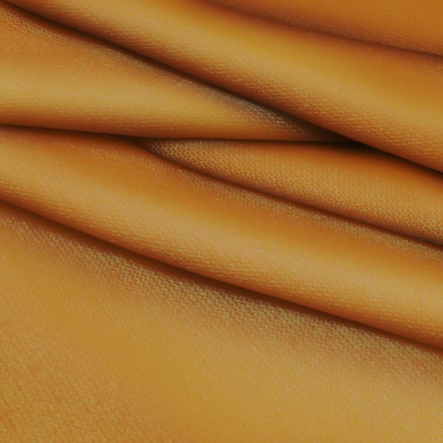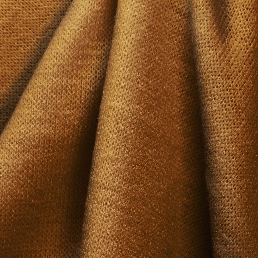 La tela base utilizada es el Punto Jersey de Tacto Algodón - Atenas, un tejido de punto compuesto por 81% poliéster, 15% acrílico y 4% elastano, con un gramaje de 239 gr/m2 y un ancho de 150 cm. El color liso impreso sobre este tejido es el Marrón Curry, con un CMYK de 25 59 98 18. Este color se caracteriza por ser cálido y acogedor, combinando perfectamente con tonos tierra y neutros, así como con celestes, azules y grises.