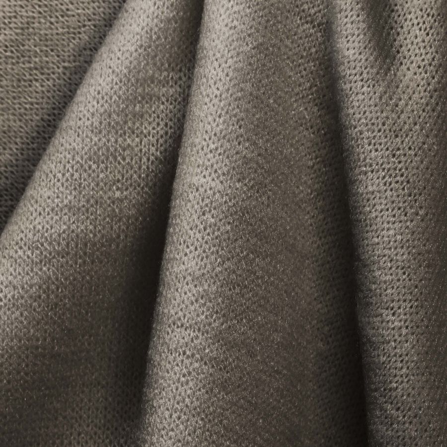La tela base es el Punto Jersey de Tacto Algodón - Atenas, con un 81% de poliéster, 15% de acrílico y un 4% de elastano. El color liso impreso es un tono de marrón lodo con un CMYK de 43 39 49 25. Este tono tiene un carácter simbólico de elegancia y sofisticación, a la vez que se representa como un color natural y orgánico. Además, combina muy bien con tonos verdes y morados oscuros. La tela está impresa con este color liso a una sola cara por impresión digital textil.