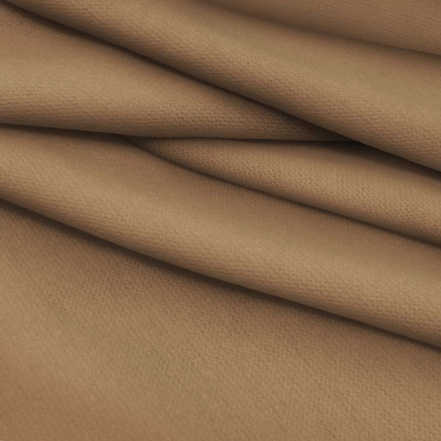 La tela base, denominada Punto Jersey de Tacto Algodón - Atenas, es un tejido de punto con una composición de 81% poliéster, 15% acrílico y 4% elastano. Su color liso impreso es un marrón-nicotina con una tinta cyan del 31%, magenta del 48%, yellow del 64% y black del 26%, lo que proporciona un color cálido y terroso que evoca elementos naturales. Este color secundario combina a la perfección con tonos verdes y tierras, así como con estampados animales y vegetales.
