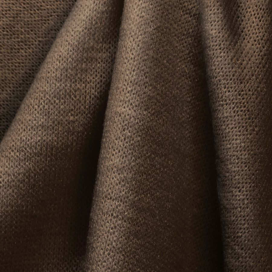 La textura de la tela base es suave y elástica, lo que le proporciona una gran capacidad de adaptación al cuerpo y de confort. Además, la tela de punto es perfecta para prendas de ropa, tanto interiores como exteriores, debido a su elasticidad y capacidad de adaptación. En cuanto al color liso, el Marrón Nogal brinda calidez, confort y elegancia a la prenda. Es un color muy versátil, fácil de combinar con otros tonos cálidos como los tonos crudos, beige y grises cálidos, así como con algunos tonos fríos como los azules oscuros o los verdes oscuros.