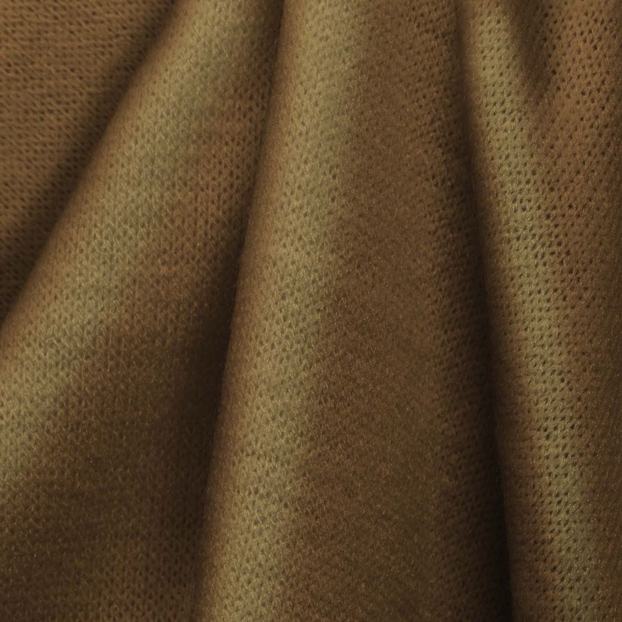 La tela base es el Punto Jersey de Tacto Algodón - Atenas, cuyo color liso impreso es un Marrón Oro Viejo, con un CMYK de 27 43 67 17. Profundizando en el simbolismo del color, representa la tierra y la naturaleza, aportando estabilidad y seguridad. Técnicamente hablando, es un color cálido, que combina perfectamente con otros colores como el gris, el beige y los tonos terrosos en general. Es importante destacar que dicha tela está impresa con el color liso a una sola cara por impresión digital textil, y que esa impresión no es un tintado, sino que se aplica de forma digital.
