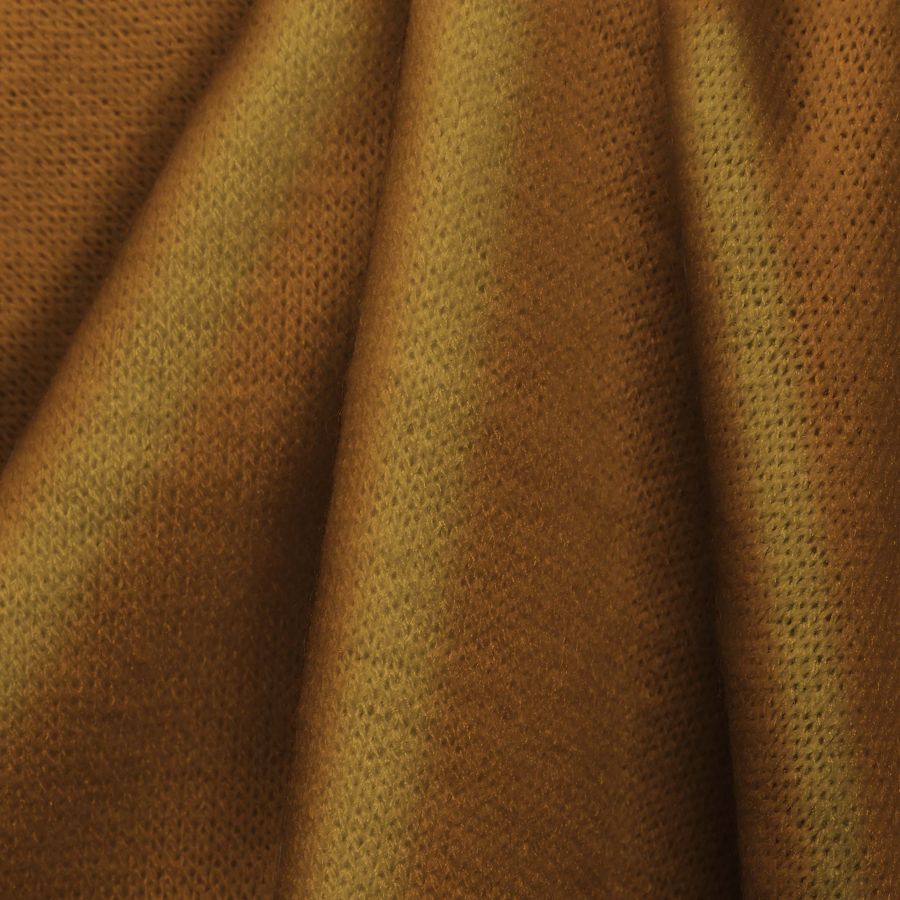 La tela base, Punto Jersey de Tacto Algodón - Atenas, presenta una composición de 81% poliéster, 15% acrílico y 4% elastano, con gramaje de 239 gr/m2 y ancho de 150 cm. La tonalidad lisa impresa en Marrón Perú cuenta con un CMYK de 17 51 81 6, en la que destaca la alta intensidad del color amarillo. Este color evoca sensaciones de calidez, confort y estabilidad, y combina armoniosamente con tonalidades marrones, rojas y doradas. Es importante destacar que el tejido está impreso con el color liso únicamente en una de sus caras mediante impresión digital textil. La tela base presenta una textura suave y elástica, ofreciendo una gran comodidad en su uso. Con respecto a las aplicaciones y usos, este tejido es ideal para prendas de lencería, pijamas, jerseys, tops, vestidos, cardigans, mantas, calcetines, fulares, bufandas y prendas de punto infantil. En cuanto a los cuidados, se recomienda no blanquear, lavar a temperatura máxima de 30ºC, admite limpieza en seco salvo tricloroetileno, planchar a temperatura fría y evitar el uso de la secadora. Es importante destacar que esta tela es apta para el invierno y otoño/invierno 2021. La tecnología de impresión utilizada en la fabricación de este tejido es la sublimación (poliéster), lo que permite un alto nivel de detalle y resolución en los diseños, así como una gran durabilidad y resistencia al lavado y la decoloración.