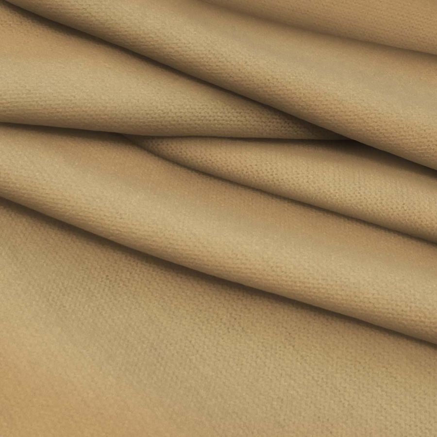 La tela base es el Punto Jersey de Tacto Algodón - Atenas, con una composición de 81% poliéster, 15% acrílico y 4% elastano. Su gramaje es de 239 gr/m2 y tiene un ancho de 150 cm. El color liso impreso es el Marrón Venado, con una mezcla de tinta Cyan 21, Magenta 38, Yellow 62 y Black 9 que produce un CMYK de 21 38 62 9. Este color se describe como un marrón oscuro con un tinte rojizo, haciendo referencia a los tonos del pelaje de un venado. Se combina particularmente bien con verdes, morados y grises.