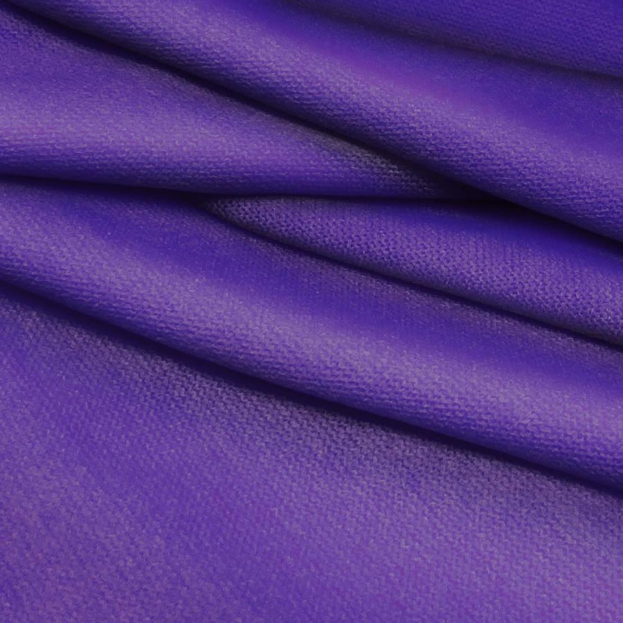 El color Morado-Violeta Azul evoca un sentimiento de misticismo y equilibrio. Es un color secundario que oscila entre el azul y el rojo, por lo que combina perfectamente con tonos en la misma gama cromática. Por ejemplo, con colores pastel como el beige logra una armonía suave y elegante. La tela está impresa con este color liso a una sola cara mediante impresión digital textil.