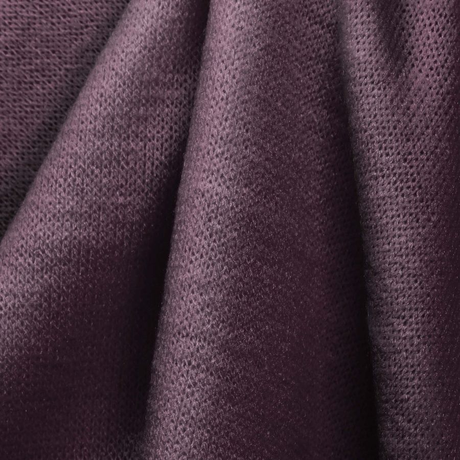 La tela base del tejido utilizado es el Punto Jersey de Tacto Algodón - Atenas, con una composición de 81% poliéster, 15% acrílico y 4% elastano. Su peso es de 239 gr/m2 y su ancho alcanza los 150 cm. El color liso impreso es Morado Berenjena, obtenido a través de la tinta Cyan 56, Magenta 71, Yellow 42 y Black 41. Este color fusiona la intensidad del púrpura con el profundo tono oscuro del berenjena, creando un matiz vibrante y sofisticado. El color secundario da la impresión de un color de piel delicadamente moreno, perfecto para combinarse con tonos marrones oscuros o dorados.