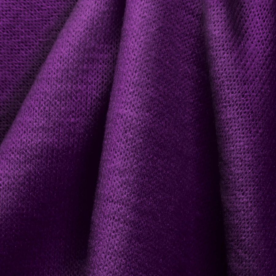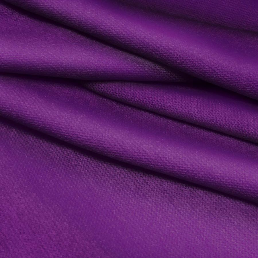La tela base es el Punto Jersey de Tacto Algodón - Atenas, de composición 81% poliéster, 15% acrílico y 4% elastano. El color liso impreso en ella es un hermoso tono Morado Mora con un CMYK de 82 100 29 24. Este color es un matiz armonioso que combina bien con otros tonos cálidos, como el marrón o el beige.