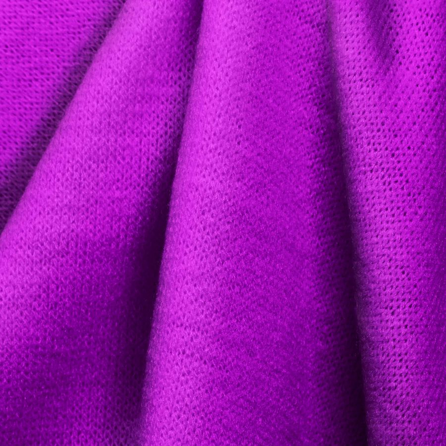 La tela base es el Punto Jersey de Tacto Algodón - Atenas, con una composición de 81% poliéster, 15% acrílico y 4% elastano. Su gramaje es de 239 gr/m2 y su ancho de 150 cm. El color liso impreso es Morado Flox, con un CMYK de 53 80 0 0. Este color se caracteriza por ser un tono de morado vibrante y llamativo, que es perfecto para ser utilizado como color principal en prendas femeninas como vestidos o blusas. El color Morado Flox combina bien con otros colores como el blanco, el negro y el gris.
