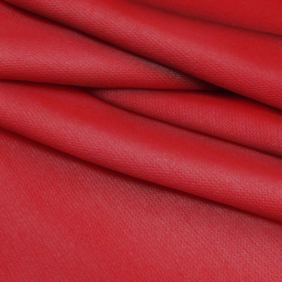La tela base, el Punto Jersey de Tacto Algodón - Atenas, es una tela de punto compuesta por 81% poliéster, 15% acrílico y 4% elastano. El gramaje de la tela es de 239 gr/m2, con un ancho de 150 cm. El color liso impreso es Rojo Granero Rojo, con una combinación de tintas de 20% de Cyan, 100% de Magenta, 95% de Yellow y 13% de Black, representando un tono rojo vivo y audaz.