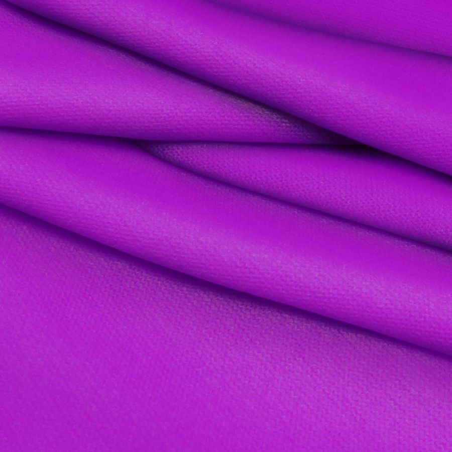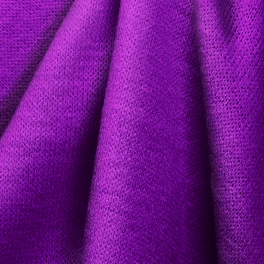 La tela base es el Punto Jersey de Tacto Algodón - Atenas, compuesta por 81% poliéster, 15% acrílico y 4% elastano, con un gramaje de 239 gr/m2 y un ancho de 150 cm. El color liso impreso es Morado/Púrpura Munsell, con un CMYK de 64 86 0 0. Este color simboliza la nobleza, creatividad y misticismo, y técnicamente se trata de una combinación de cian y magenta con ausencia de amarillo y negro. Combina bien con tonos neutros como grises, blancos y negros, así como con tonos contrastantes como verdes, amarillos y anaranjados.