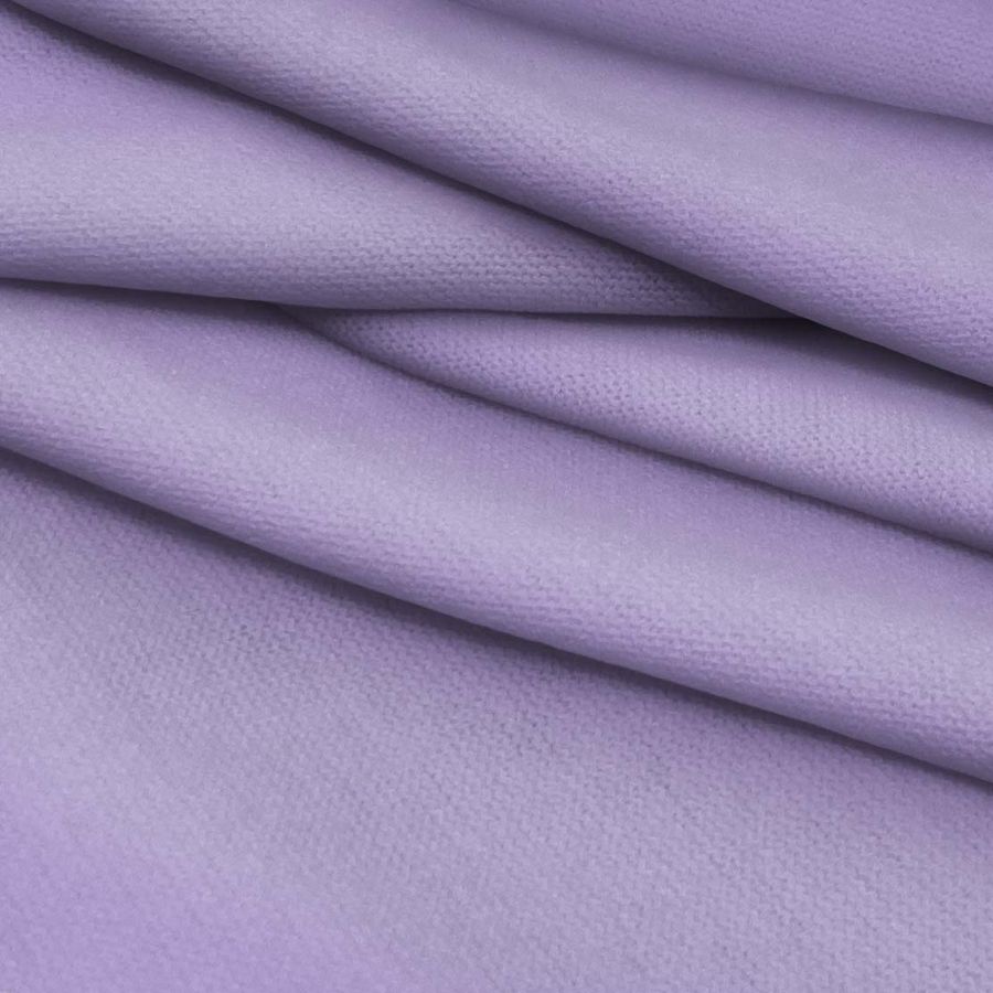 La tela base es el Punto Jersey de Tacto Algodón - Atenas, compuesta por 81% poliéster, 15% acrílico y 4% elastano. Su gramaje es de 239 gr/m2 y su ancho de 150 cm. El color liso impreso es un morado púrpura pastel ligero, con un CMYK de 36 42 0 0. Este color transmite elegancia, delicadeza y calidez. Se combina perfectamente con tonos crema, beige, gris claro y turquesa suave.