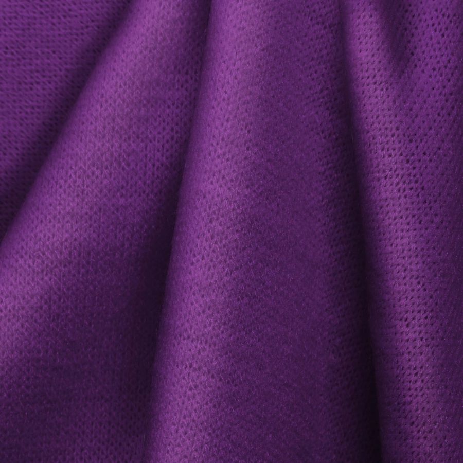 La tela base de esta prenda es un Punto Jersey de Tacto Algodón - Atenas en un tono morado purpúreo intenso (CMYK: 54 77 0 0). Este color transmite elegancia, sofisticación y creatividad al mismo tiempo que representa calma y tranquilidad. Esta tonalidad se encuentra en la gama media-alta de su saturación, lo que significa que crea un equilibrio perfecto entre un tono fuerte y un tono neutro. El color morado purpúreo combina especialmente bien con tonos ricos como marrones, negros y oro. El tejido está impreso con el color liso a una sóla cara por impresión digital textil.