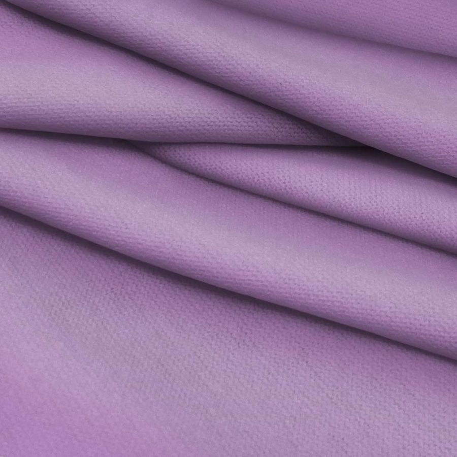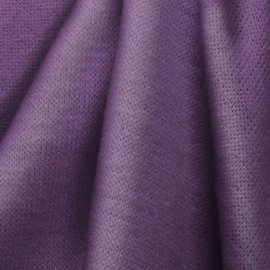 La tela base de esta descripción es el Punto Jersey de Tacto Algodón - Atenas, con una composición de 81% POLIÉSTER, 15% ACRÍLICO, 4% ELASTANO. El color liso impreso es Morado/Violeta Africana y está formado por una combinación de tinta Cyan del 35% y tinta Magenta del 55%, con un CMYK de 35 55 0 0. Este color liso se combina con otras tonalidades de púrpura, tonos grises y amarillos pálidos.