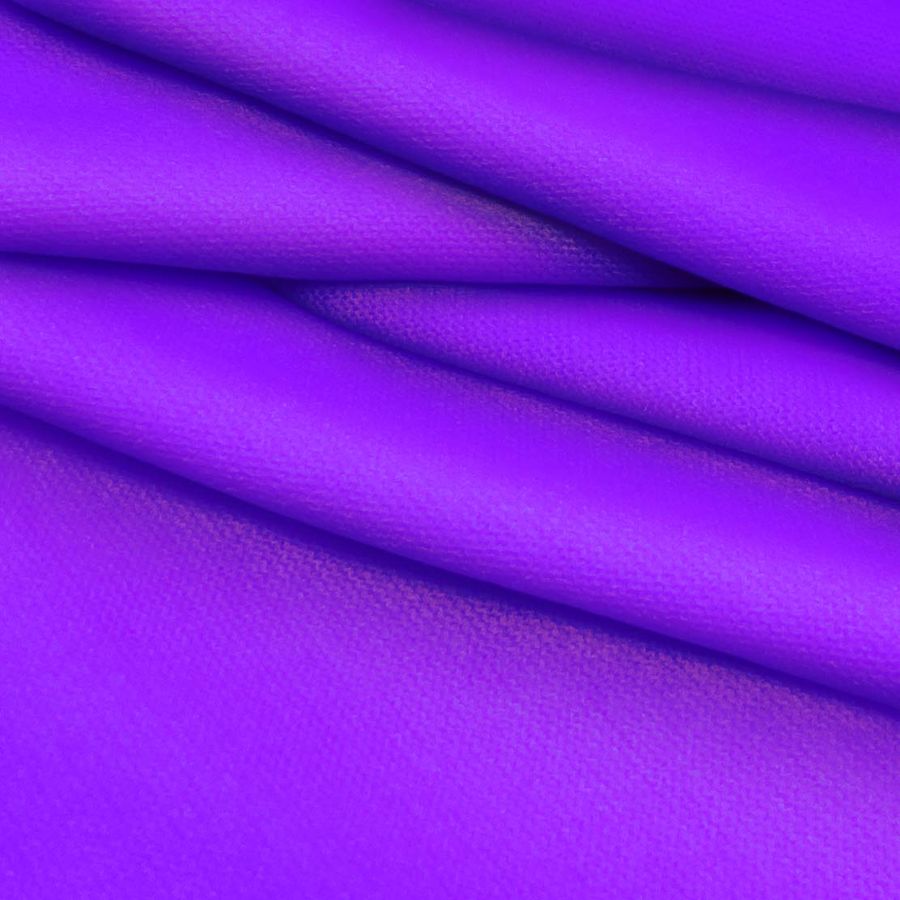 La tela base es el Punto Jersey de Tacto Algodón - Atenas, compuesta por 81% poliéster, 15% acrílico y 4% elastano, con un gramaje de 239 gr/m2 y un ancho de 150 cm. El color liso impreso es Morado - violeta rueda de colores, con una mezcla de tinta cian de 80 y magenta de 80, sin presencia de tinta amarilla ni negra en el CMYK.