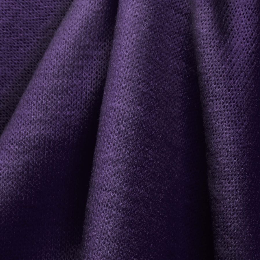 La tela base de esta prenda es el Punto Jersey de Tacto Algodón - Atenas, con una composición de 81% poliéster, 15% acrílico y 4% elastano, un gramaje de 239 gramos por metro cuadrado y un ancho de 150 cm. El color liso impreso en esta tela es un vibrante morado/violeta ruso, con una tintura de cian de 94, magenta de 100, amarillo de 34 y negro de 36, con un verbo “sensual” o “intenso”. Este color combina perfectamente con tonalidades frías, como azul oscuro o gris, y con tonalidades cálidas, como amarillo mostaza o rosa pastel. Es importante destacar que la tela está impresa con el color liso a una sola cara por impresión digital textil, lo que significa que el tejido no está tintado, sino que se imprime por una sola cara.