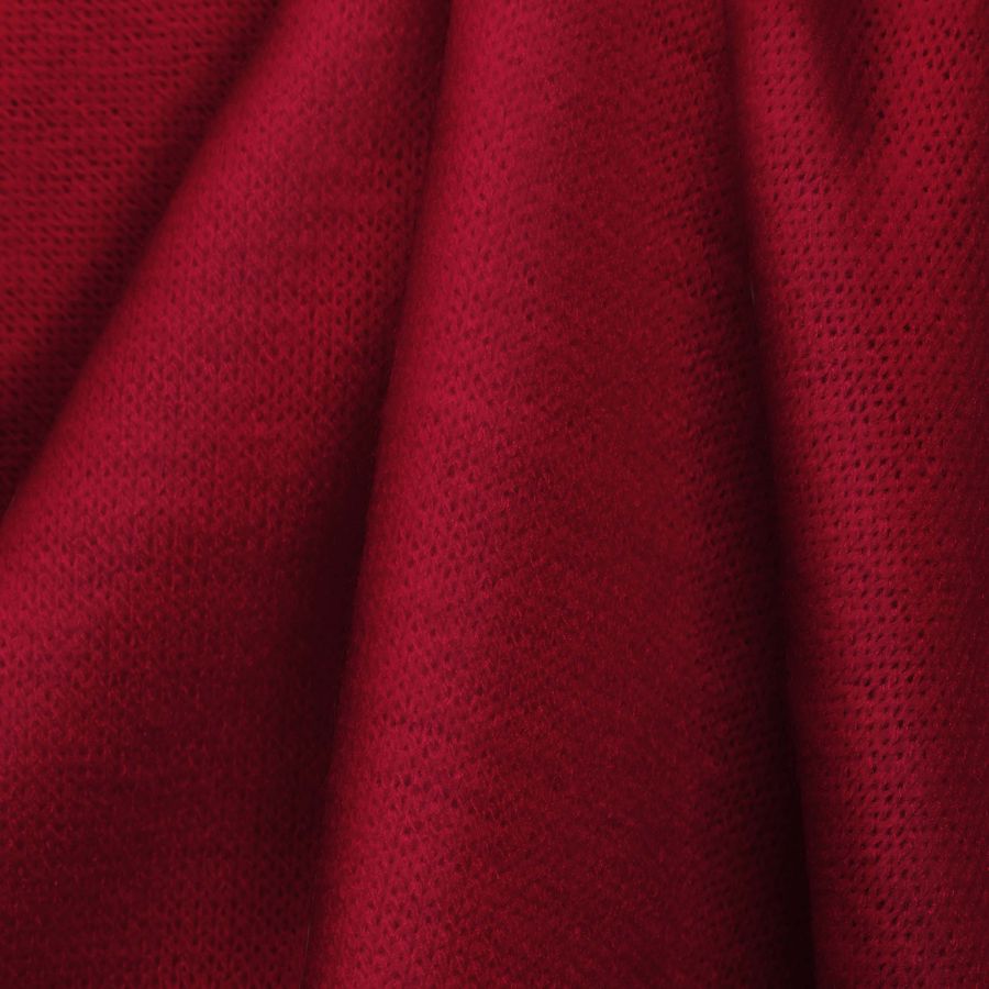 La tela base es el Punto Jersey de Tacto Algodón - Atenas, cuyo color liso impreso es el Rojo Burdeos, representado por la combinación de tinta de Cyan 16, Magenta 98, Yellow 71 y Black 6 en su contenido CMYK. Este color secundario transmite la sensación de elegancia y sofisticación, perfecto para prendas tanto de invierno como de otoño/invierno. El Rojo Burdeos combina a la perfección con tonos neutros como el blanco, negro y gris, pero también con colores como el dorado y el verde oscuro.