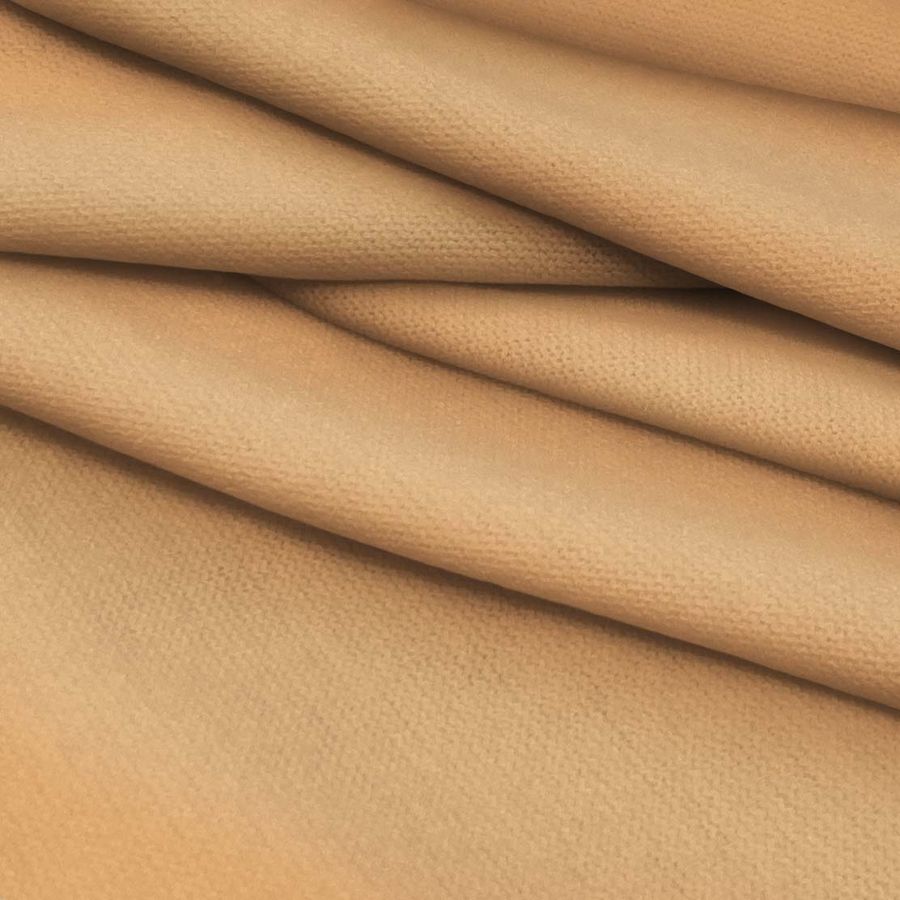 La tela base, Punto Jersey de Tacto Algodón - Atenas, posee una composición del 81% de poliéster, 15% de acrílico y un 4% de elastano. Su gramaje es de 239 gr/m2 y cuenta con un ancho de 150 cm. Este tejido de punto es suave y elástico, convirtiéndolo en una opción ideal para prendas de moda y accesorios, así como para textiles del hogar como mantas y servilletas. El color liso impreso en la tela es un vibrante Naranja Mandarina Claro, cuyo CMYK es de 0 40 60 0. Este color combina perfectamente con tonalidades terrosas como el marrón oscuro y el beige, aunque también se puede resaltar con tonos de azul marino o verde oliva. Es importante destacar que la tela está impresa a una sola cara por impresión digital textil, lo que significa que no se trata de un tejido tintado sino impreso.
